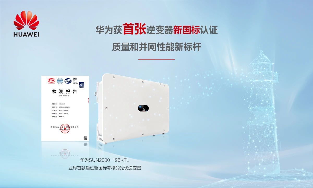 2020年4月16日,中國電科院南京分院向華為頒發(fā)逆變器新國標認證證書,這是自2019年國內(nèi)正式執(zhí)行新國標(GB/T 37408 《光伏發(fā)電站并網(wǎng)逆變器技術(shù)要求》)實施檢測認證以來的首次頒證。華為SUN2000-196KTL機型成為行業(yè)內(nèi)首款通過新國標考核的光伏逆變器,擔綱業(yè)界逆變器質(zhì)量和并網(wǎng)性能技術(shù)新標桿。